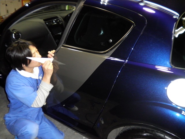 カーボン調ラッピングフィルムでワンポイントやカラーラインなんかがオススメです。